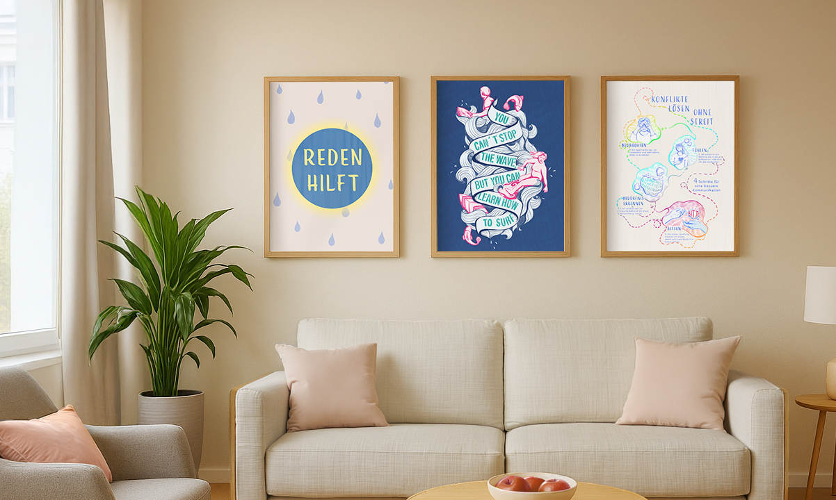 Wie beeinflussen uns Illustration, Farbe und Sprüche im Therapieraum oder im eigenen Zuhause?